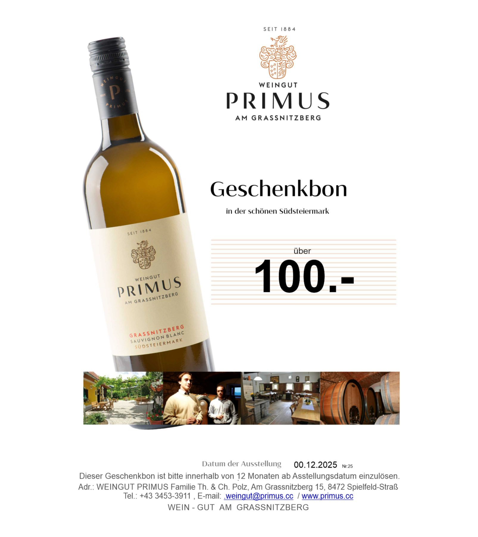 Der Gutschein wird von uns zuhause erstellt und Ihnen als Anhang per E-mail zugesendet –>nach Wunsch auch mit der Post